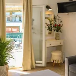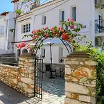 Hotellet La Fleur Apartments Skiathos stad, som ligger cirka 10 minuters promenad från Papadiamantis hus, har 10 rum med utsikt över trädgården.